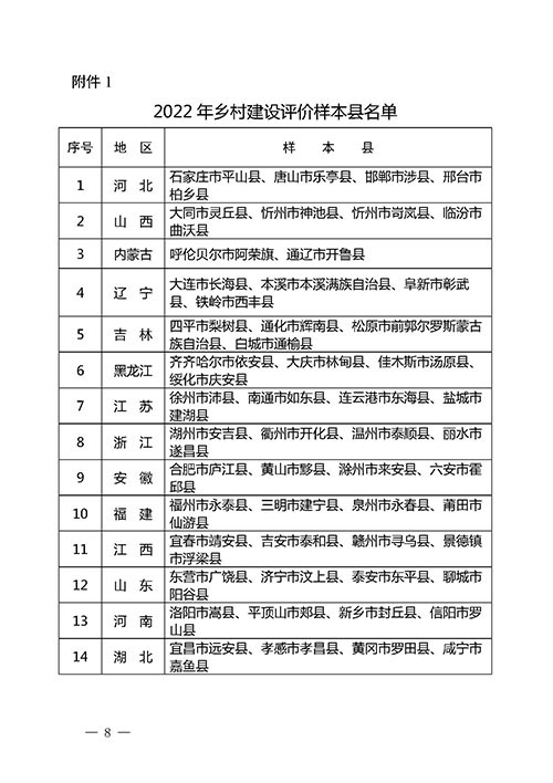 附件:1. 2022年乡村建设评价样本县名单