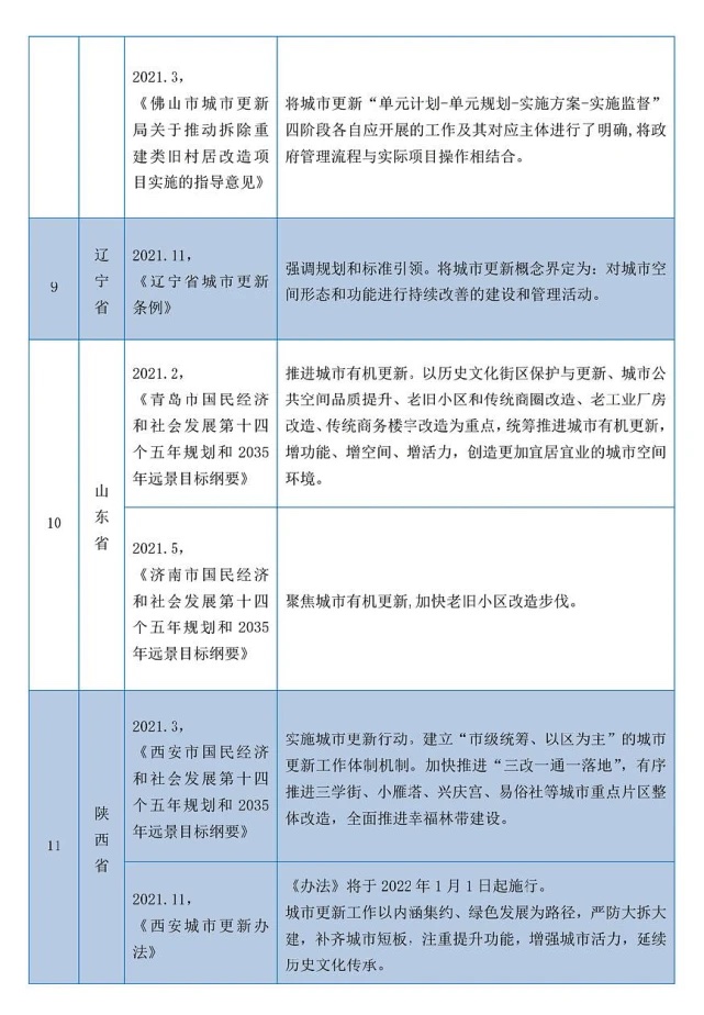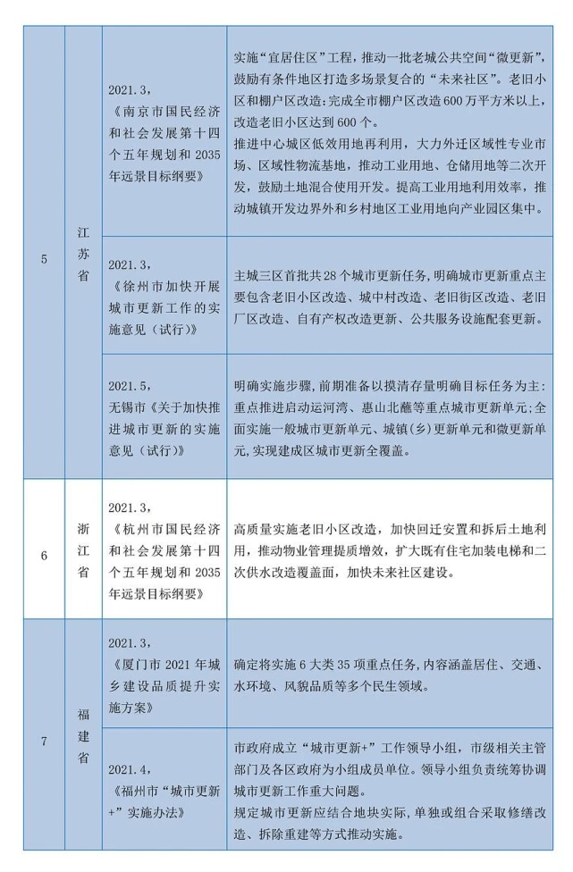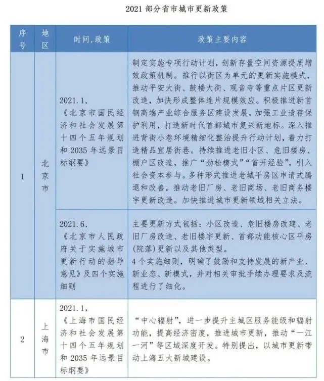 2021年城市更新的重要地位再次升级,相关支持和规范性政策也进入密集出台期。